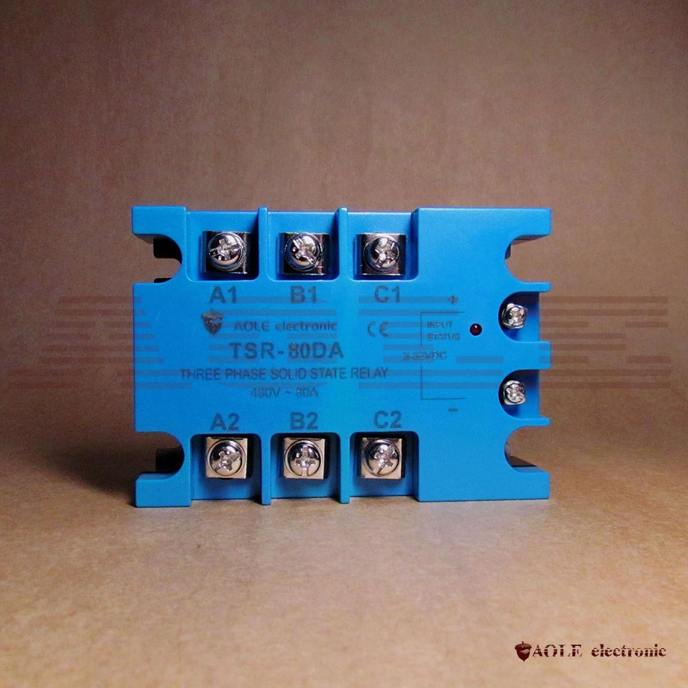 在大电流的场合,可选用三只长条装置单相固态继电器来实现一只三相固态继电器的功能。在使用时将输入电路并联或串联使用,(但要保证串联使用时串联回路的电流要大于一只单相SSR开启的最小开启时5mA电流;在并联使用时,要求输入的电流总和要大于三只单相固态继电器最小开启电流之和,) 即可实现一只三相SSR同样的功能,并安装在一只带有风扇的D系列散热器上,另外,由于使用三只单相固态继电器来实现一只三相SSR的功能,使用时产生的热量分散,有利散热、可有效地保证可控硅不会因过热而损坏。