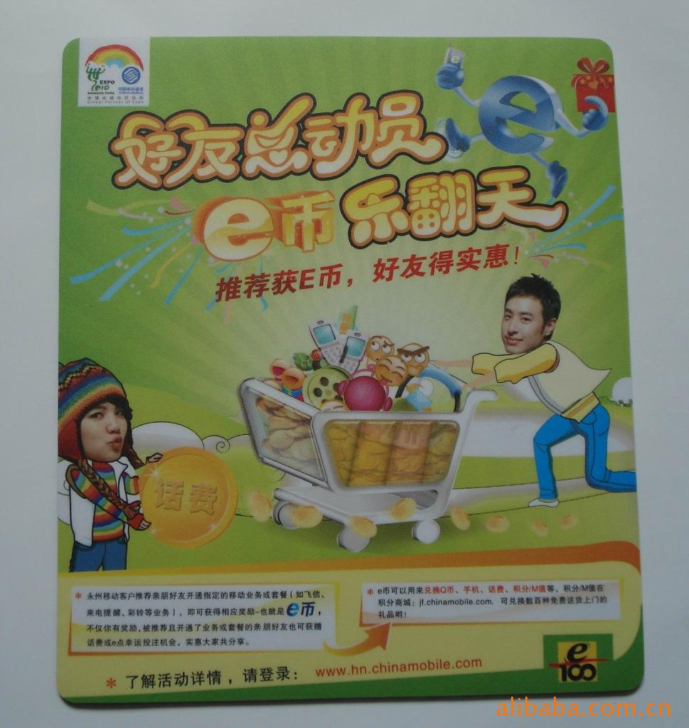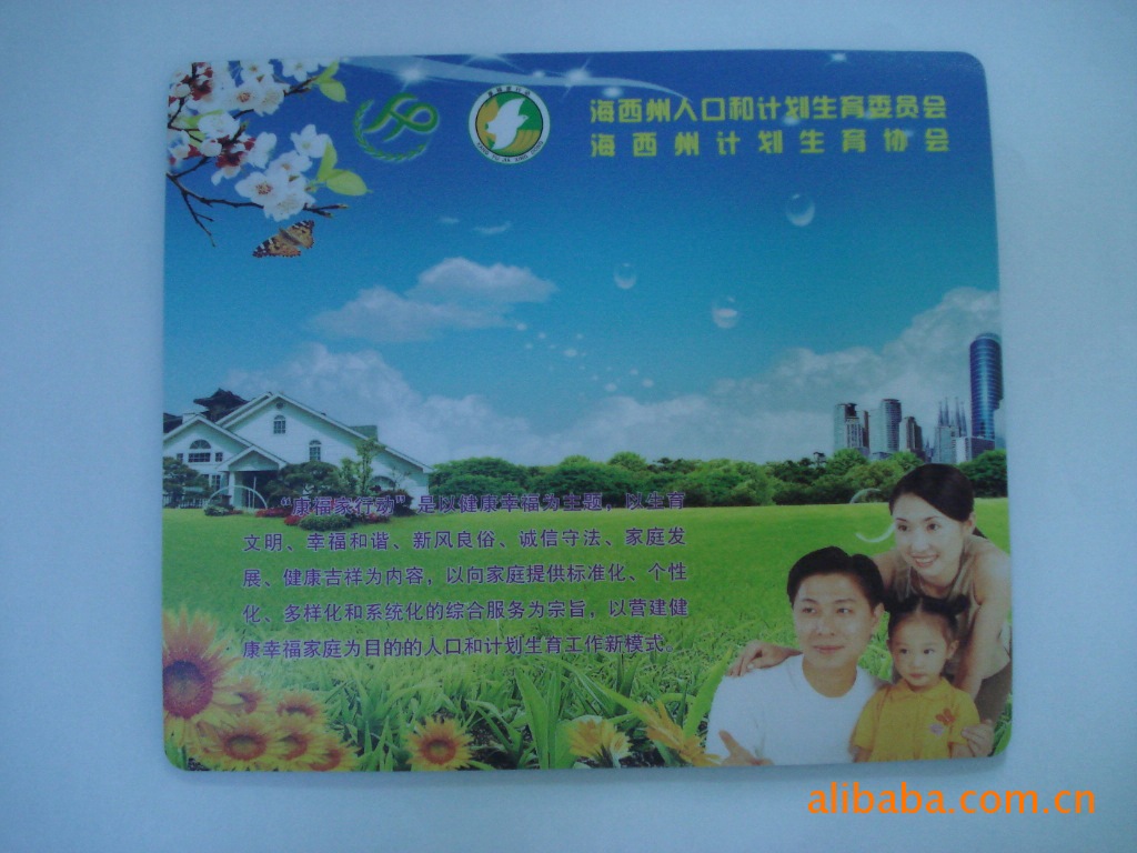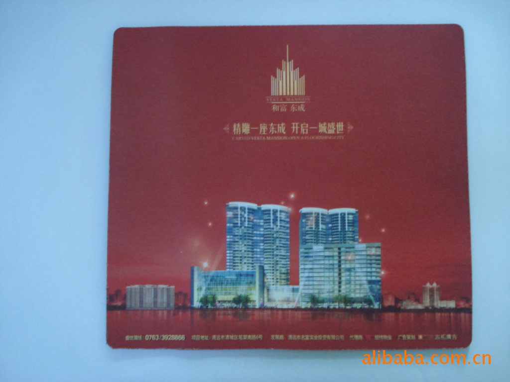 广告鼠标垫:EVA+纸+PVC 18*21*0.3CM 5000个单价0.82元 10000个单价0.62元 天然橡胶布面鼠标垫 18*21*0.2 5000个单价1.50元 10000个单价1.30元 做货5-7天 本厂是专业生产各类鼠标垫的厂家,可按照客户要求制作任意造型及印刷LOGO,结构分别有:EVA鼠标垫:下面EVA+上面彩色印刷过PVC磨砂;发泡橡胶鼠标垫:天然发泡橡胶+上面彩色印刷过PVC磨砂;PP塑料鼠标垫:直接印刷PP塑料上面;热转印布鼠标垫:采用发泡橡胶上面佳积布上彩色印刷,可根据客户的要求不同选择不同结构的鼠标垫,价格低廉,促销效果显著,是各企业促销之理想选择,欢迎随时来电来函咨询及索取样品参考.
