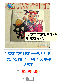 深龙杰科技是一家专业生产万能平板打印机的厂家,公司有着业界最先进的技术力量支撑,已跟多家优秀企业达成合作,我司生产机型幅面包括;329MM*480MM 420MM*900MM 610MM*1000MM 610MM*2000MM 1118MM*1000MM 1118MM*2500MM 1600MM*2500MM。可供不同规模,不同环境的企业选择。万能平板打印机专印各种特殊材料产品彩色图案、LOGO及文字实现计算机数据输出到打印机——直接在物体上喷印! 1.可在任何材质上喷印图案文字。如:金银铜铁铝板、PCB板、木板、家具家居装饰、油画、版画、艺术 品复制、玻璃板、铜版纸、皮革、布料、石材、陶瓷、亚克力、ABS、PVC、高档彩盒、水晶材质等。 2.可在不规则曲面上喷印图片。如:手机、笔记本外壳、U盘等 3.物体高度为:1~20CM 4.免中间耗材。如:转印纸、水晶胶水、水晶胶片、高温胶布、热转印设备 5.产品适用范围: A、各加盟店,相馆,婚纱影楼,景点,医院,学校等; B、工业上的应用:板材,家具厂,广告制作招牌,塑胶、雅克力、电子仪器、五金产品、有机玻璃等行 业样品打样及产品批量生产起到了快速出样,加工成本成倍降低的特点。 6.革新传统印刷技术:打印机,丝印机,胶印机,UV机,彩印机,印刷机,热转印机,水转印机, 移印 机,喷绘机,烫画机,喷画机等印刷机械 7.免高级印刷技术工烦恼,去掉"高薪人才",这些高级活给普通员工一个成长机会! 万能打印机做为印刷业的新设备使得传统的印刷机械如丝印机,胶印机,UV机,写真机,彩印机,印花机 , 印刷机,热转印机,水转印机,移印机,喷绘机,喷画机,喷印机,烫画机,烫印机等等相形见拙,它 注定会引领印刷机械设备行业的大变革,也必将是未来的新一轮大趋势。