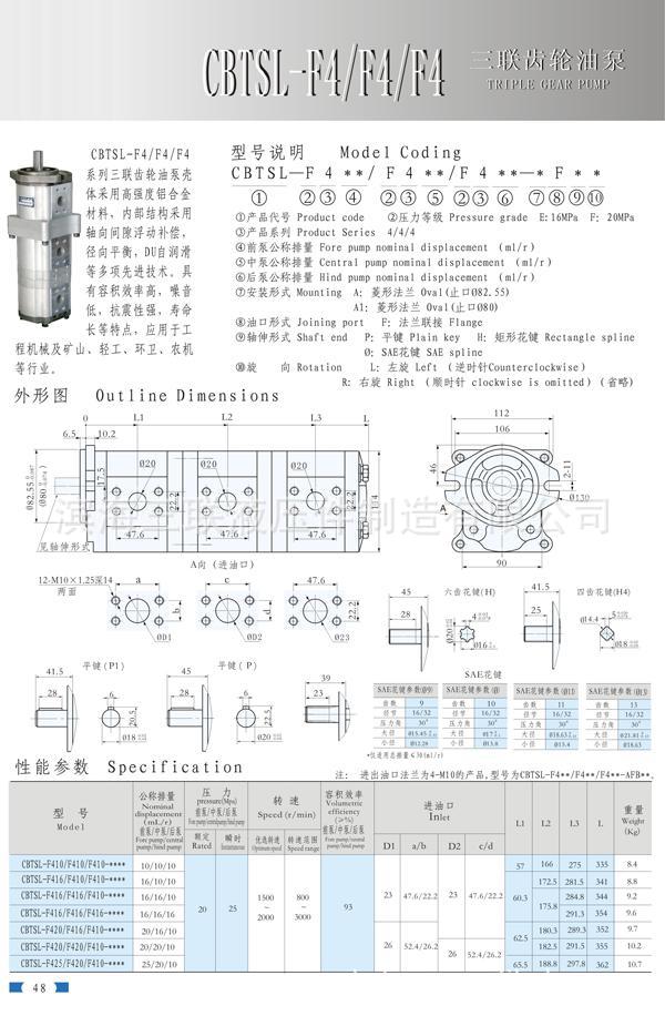 CBTSL-F3/F3/F3系列三联齿轮油泵壳体采用高强度铝合金材料,内部结构使用了轴向间隙浮动补偿、径向平衡、DU自润滑等多项先进技术。它具有容积效率高、压力高、噪音低、抗振性强、寿命长等特点。广泛应用于叉车、装载机、挖掘机、起重机、压路机等工程机械及矿山、轻工、环卫、农机等行业。