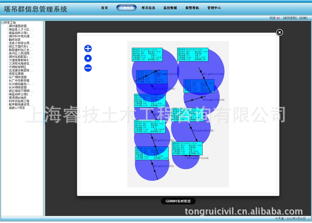 塔吊群信息管理界面,实时状态在办公室都能了如指掌。物联网的技术,让你做在办公室就能享受在现场的体验。 联系卖家18721894170