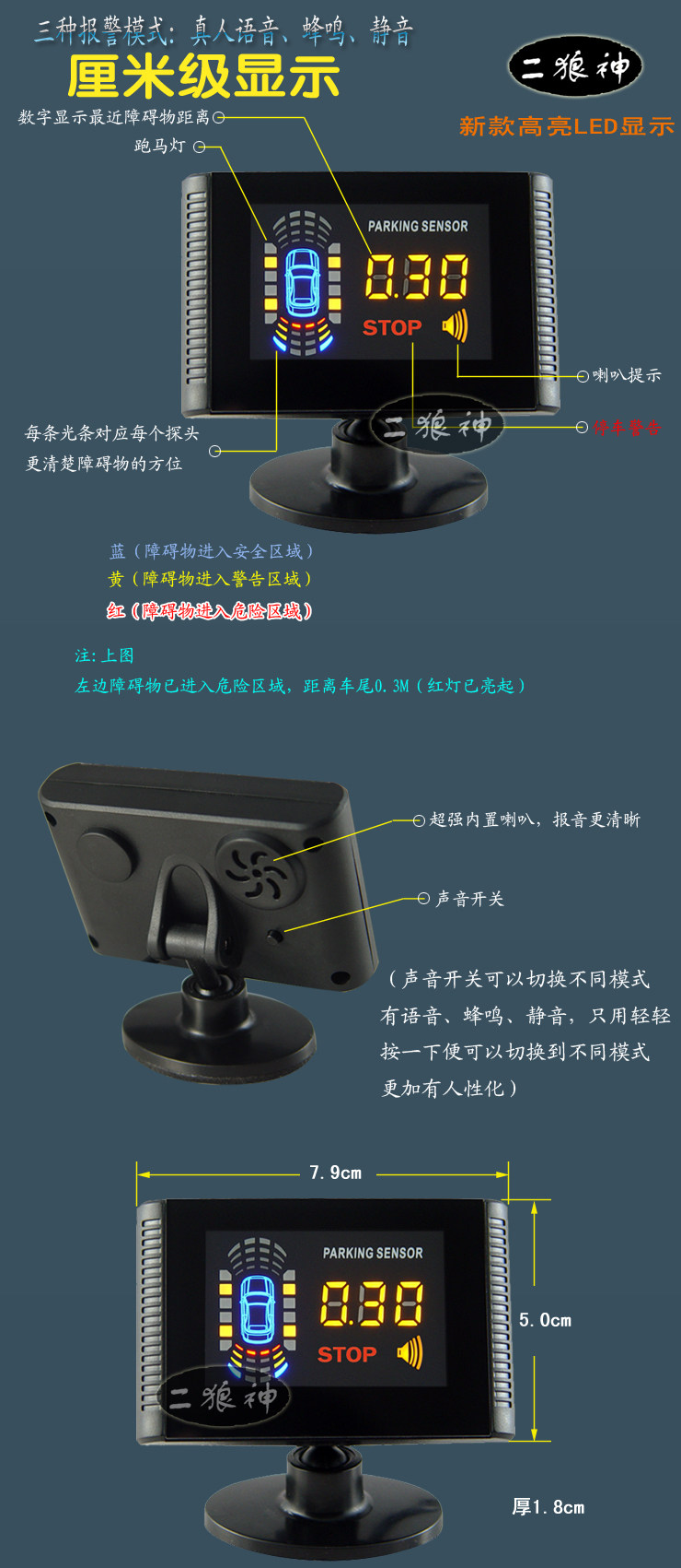 ◆数字提示:在显示器中间,明显的数提示障碍物距离,精确准确,一目了然