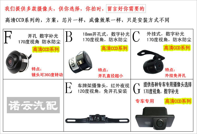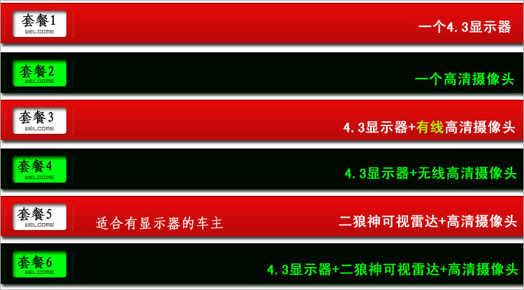 1)此连接,为多选择套餐,4.3寸车载显示器及高清摄像头,我们提供不同款式选择,拍前请你选择或留言。