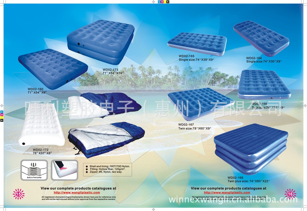 一类:休闲用品:充气床、充气休闲沙发、充气泳池、沙滩球、浮排、充气广告用品、不倒翁等。