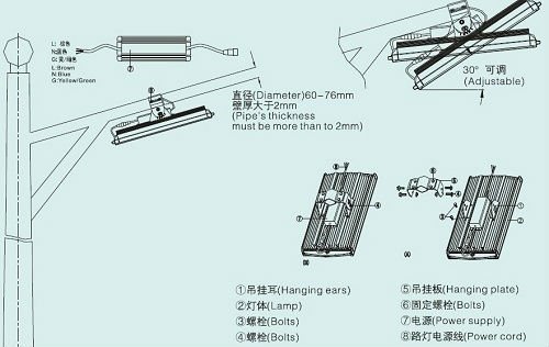 1、设计新颖:LED路灯采用新型光源大功率高亮度的LED做发光源,产品发光颜色有白色(2700K-9000K色温)、红色、绿色、蓝色、黄色等多种颜色可供选择;底座采用铝合金,表面并做氧化处理,内部采用特殊的通气结构设计,具有产品重量轻,散热好、外型美观高档的优点;色调温和,使用安全;安装更换方便。