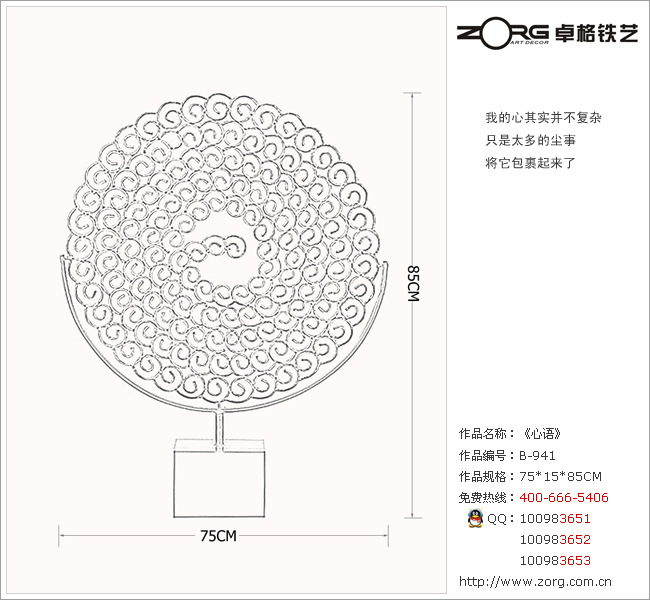 ZORG卓格铁艺B941号艺术品《心语》金属工艺品摆件