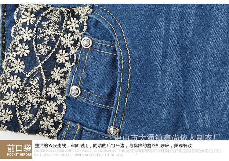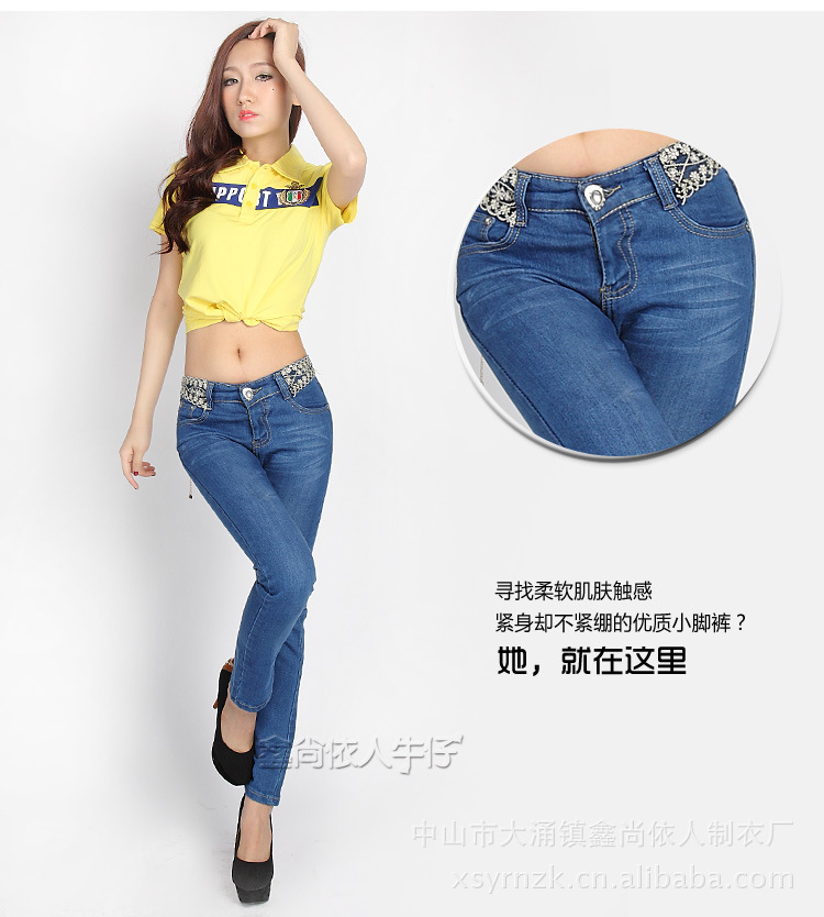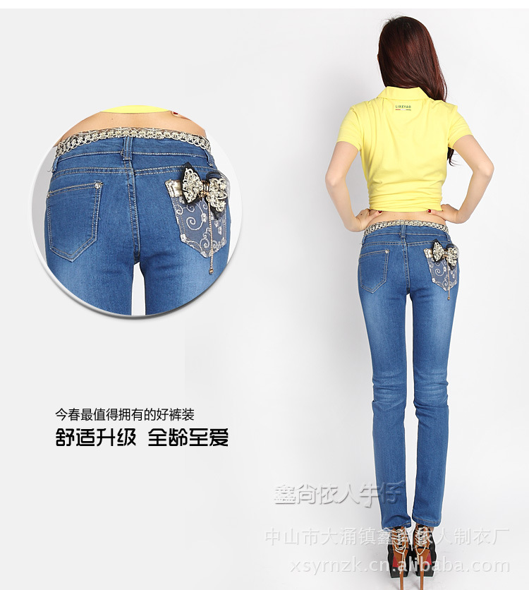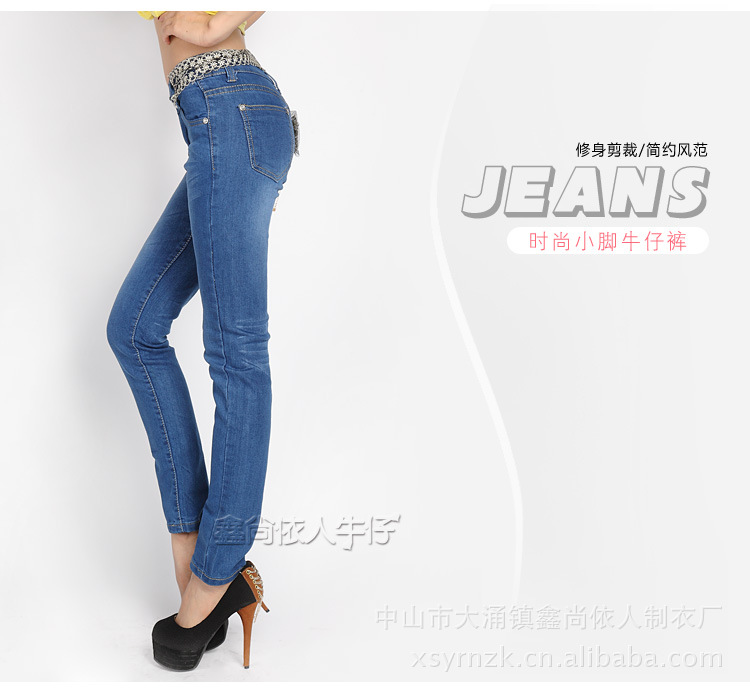 2013新款欧美蕾丝牛仔裤修身显瘦女装牛仔裤紧身长裤