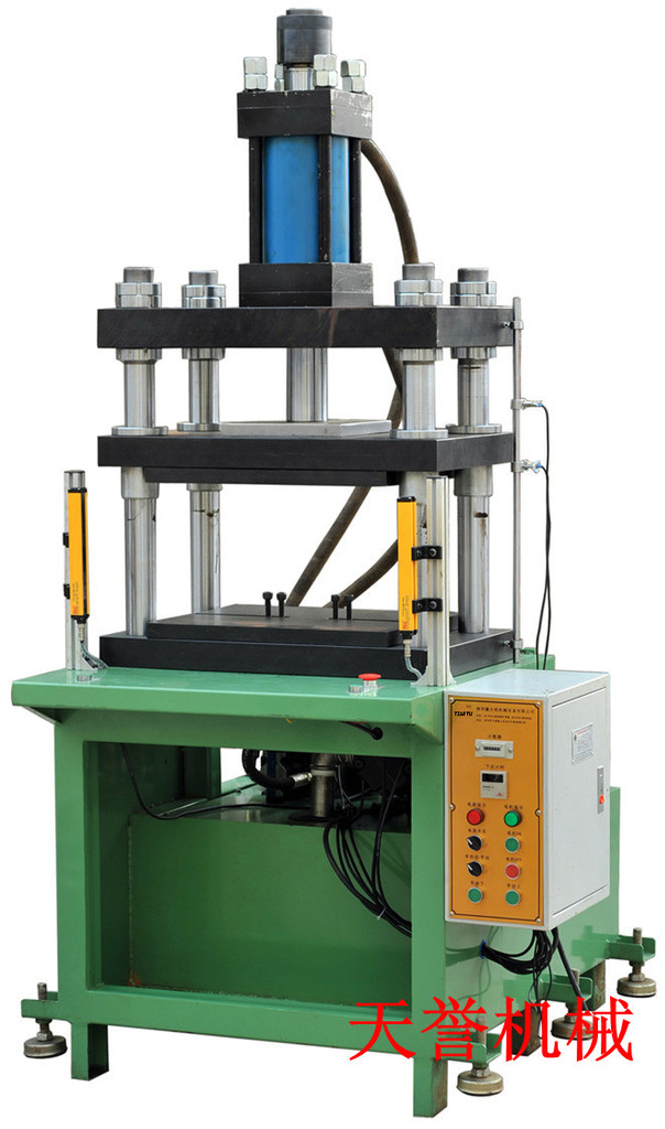 本系列液压机广泛用于各种手机、数码相机、手提电脑液晶显示屏保护膜裁切,各种不干胶、切半断等;各类手机或遥控器硅胶、塑胶按键冲切,塑料制品整切分切;适合使用无导向简易型的裁切模具,是广大手机行业,电脑行业相机行来的必选设备. 产品特点: 1.该系列液压机床以1-14MPA的液体压力为动力源,外接三相AC380V 50HZ或三相AC220 60HZ交流电源.总耗电功率不超过3.7KW.(也可依客户需求使用单相AC220民用电源) 2.该系列设备以液体作为介质来传递能量,效率高,平均一次的裁切周期不到0.6秒. 3.设备待机时噪音不超过80分贝.(选用单相电机,待机时噪音为85分贝) 4.采用四柱三板式结构,活动板的垂直精度由四个精密导套控制,下工作面与上工作面任意点的平行精度达到0.08MM以下. 5.采用可调式定位油缸,下死点定位精度高,重复精度达到0.01mm以下.100%保证裁切深度 6.具有自动计数功能,分手动和半自动两种控制方式,手动可将压装上模停在任意行程范围内,配有紧急回升按钮,也可加装红外线护手装置 7.最大裁切面积可达580MM*350MM(相当于21英寸液晶显示屏) 8.主轴的下降速度为88MM/S, 9.压力、裁切行程、下压时间、闭合高度客户均可自行调整,方便操作; 10.液压系统内置油箱底部,外观整洁,稳重. 工作台下方装有脚轮和脚杯,可轻便移动,该系列最大机型重量不超过400KG. 11.该系列液压机械出力范围有3T,5tf. 10tf. 可选.(1tf=1000kgf=9.8KN), 也可按客户需求定做. |