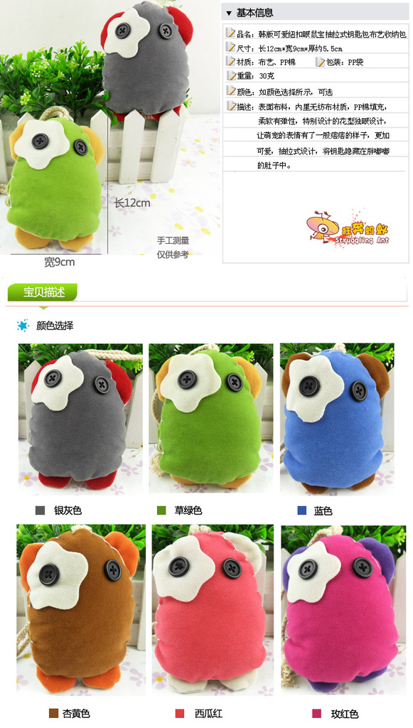 纽扣眼鼠宝钥匙包:宝贝布料相对之前有所更换,现在更加牢固。