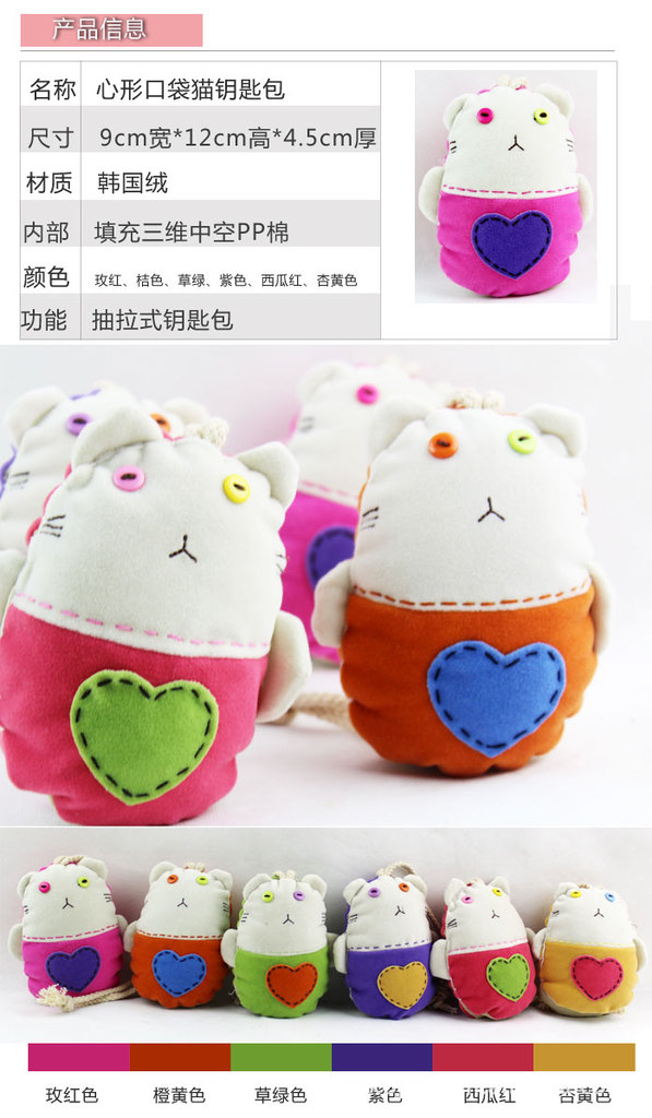 心型口袋猫钥匙包:宝贝布料相对之前有所更换,现在更加牢固。