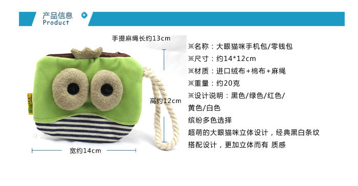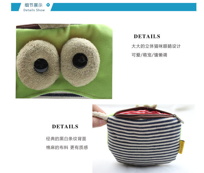 商品名称:条纹系大眼猫咪/化妆包/收纳包/手机包