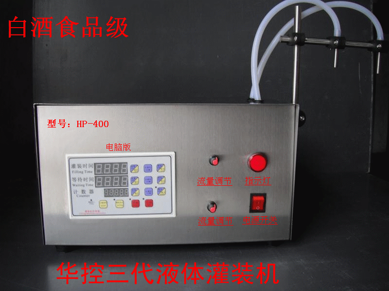 其结构简单、操作方便,并可将出料嘴大小切换、胶管任意移动灌装、能满足50-4800(ml)以上无限量。(任意调节的灌装容量要求,且不受灌装容量的限制、是一种可靠耐用的灌装设备)