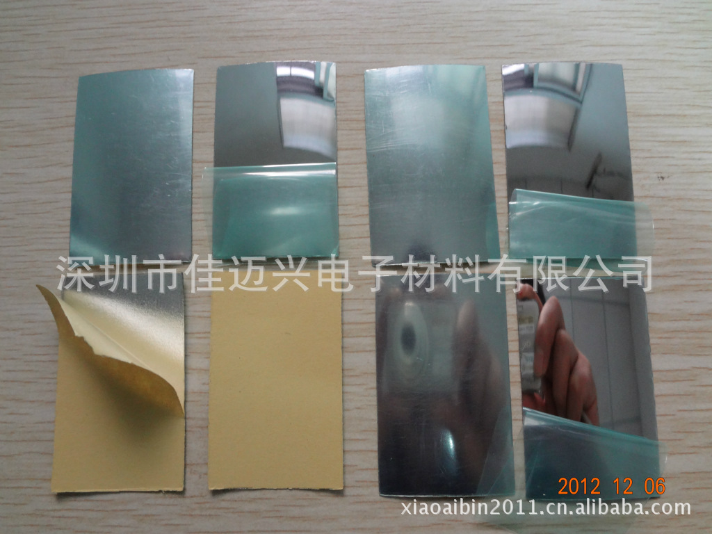2、PET麦拉反光贴纸 PET镜面反光贴,供应日本三菱、日本帝人、广东安迪高品质镜面PC镜片,PVC镜片,PET镜片,亚克力镜 MYLAR镜片,可按客户要求加工电镀成实镜、半透镜、茶色镜。此材料环保,镜面反光,亮度特优,表面镜面极为清晰,反光及照射效果极佳,其清晰度接近水银真镜的出色效果,可任意模切成平面形状,也可以弯曲,可背胶。银色PET镜片, 广泛应用于印刷、包装、玩具、装饰、电子等。PC常用规格: (915*1830mm).厚度有:0.175 0.25 0.3 0.38 0.5 0.7 0.8 1 0.9 1.0 mm。PET常用规格,0.05、0.1、0.15、0.188、0.5MM。