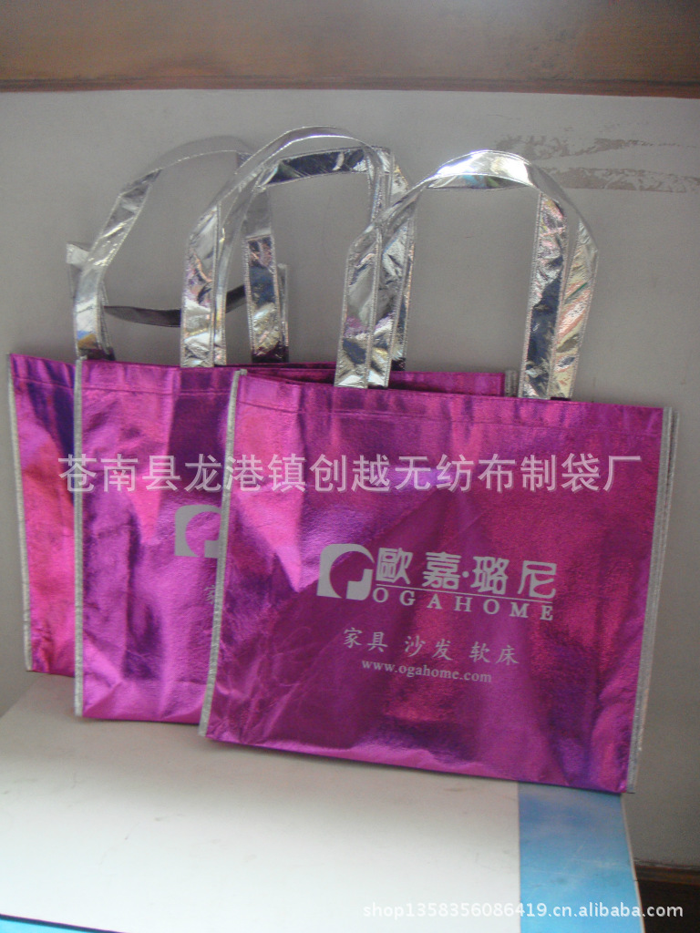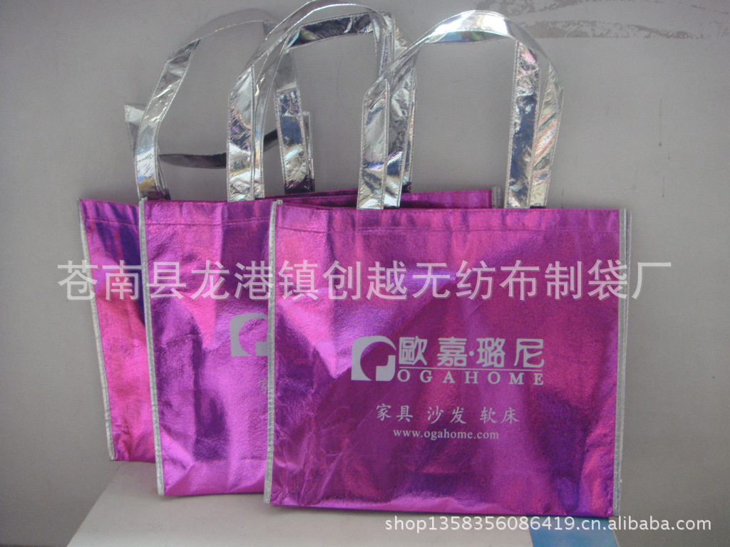无纺布彩印腹膜购物袋 金膜压纹袋 银膜腹膜袋