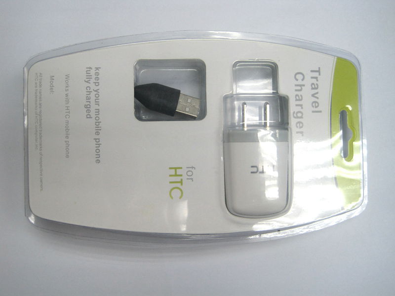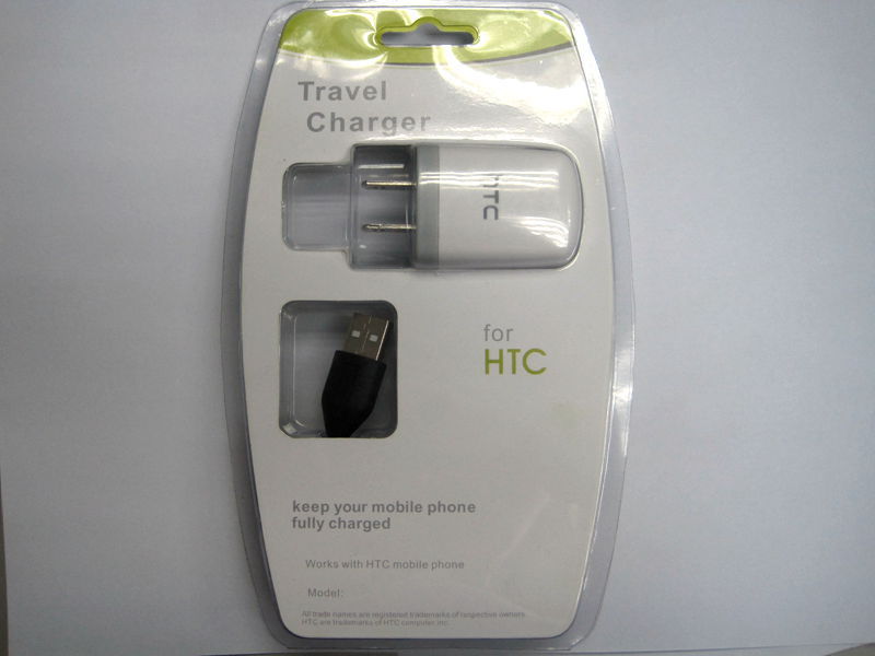 HTC充头输出电压: 5V实际输出电流:1安,(实际是880mA)输出接口: USB接口规格: 国/美/欧规(可选)外观尺寸: 35.8mm*22.4mm*62mm产品重量: 约25g/只