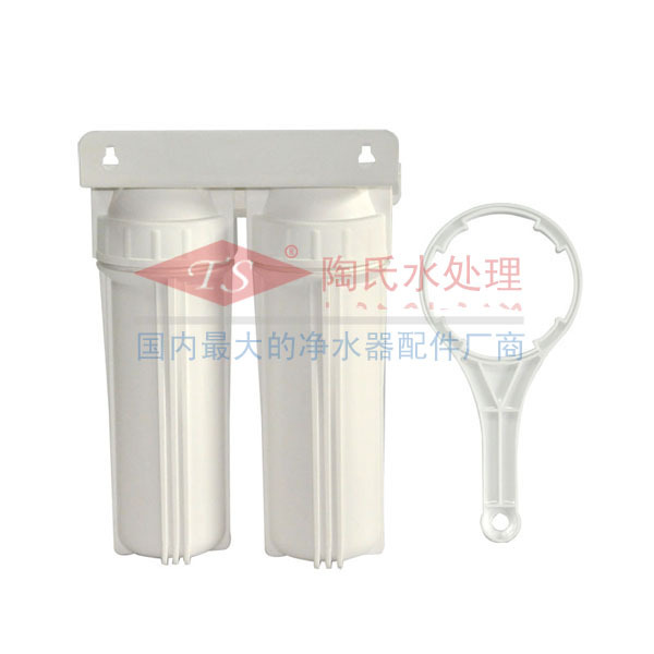 过滤器配置如下: ●级过滤器滤芯:PPF前置过滤芯(俗称:粗滤) 规格:10英寸(25。4厘米) 过滤精度:5微米 功效:过滤泥沙、水锈等大颗粒杂质以及楼顶水箱内的漂浮物、沉淀物、絮凝物。 处理水量:约6吨,建议2-4个月更换 ●第二级过滤器滤芯:CTO烧结活性炭滤芯 规格:10英寸(25。4厘米) 功效:利用其烧结后的特性,进一步吸附前级漏过的各类残留污染物、有机物等杂质,基本使水质达到无色无味。 处理水量:约12吨,建议6个月更换 ●第三级过滤器滤芯:抑菌活性炭滤芯 规格:10英寸(25。4厘米) 功效:改善净水口感,保持水质新鲜; 处理水量:约12吨,建议6个月~12个月更换