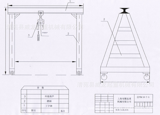 移动式起吊小型龙门架是清苑县威龙起重机械有限公司根据中、小工厂(公司)日常生产需要搬运设备、仓库进出货、起吊维修重型设备及材料运输的需要,开发出来的新型小型起重龙门架。适用于模具制造及安装、汽修厂、矿山、工地及需要起重的场合。