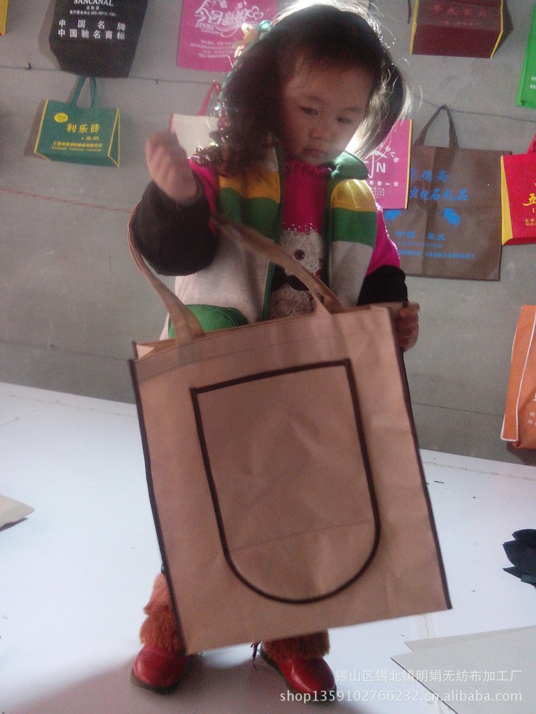 无纺布的主要成份是PP(丙纶),布料有多种颜色可供客户选择,袋子尺寸、厚度、样式可以由客户指定。