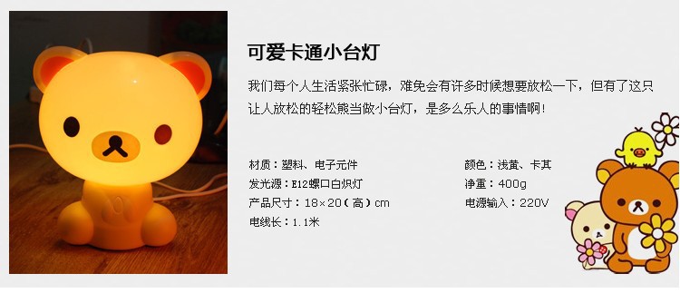 创意可爱轻松熊卡通小台灯 儿童卧室床头灯 创意婴儿小夜灯小台灯