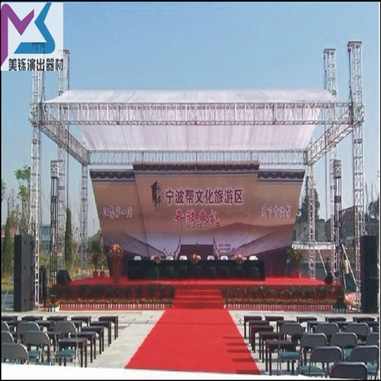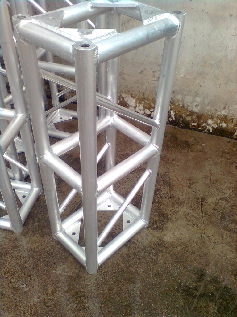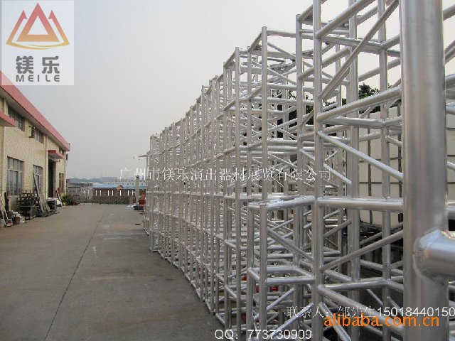 ③铝合金灯光架400*400主管材料:50*3 mm,斜管:25*2mm,端面实心三角板焊接,最大跨度:16m。