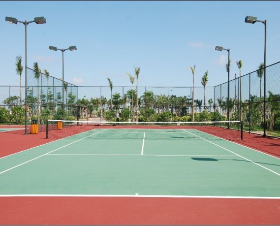 丙烯酸,弹性丙烯酸作为国际网球联合会(ITF)指定用网球场面层材料之一(丙烯酸、草场、红土场),其相对与草场、红土场在全球使用范围上更具有非常明显的优势,现全球各大比赛均以丙烯酸面层网球场为主。由于丙烯酸面层材料性能稳定,建造成本相对较低,现广泛的适用于篮球场、网球场、羽毛球场等体育场地。 弹性丙烯酸面层(弹性丙烯酸球场面层厚度3-5mm,可适用于沥青基层或高质量的混凝土基层) 1、由100%的丙烯酸类材料和特制的聚合橡胶颗粒组成,具有优良的韧性,并可以遮盖因基础产 生的细小裂缝; 2、具有极佳的减震性能,减轻打球者脚部和腿部受到的震荡(尤其适合非专业选手及休闲娱乐); 3、具有极强的抗紫外线性能,室内、室外场地均可使用; 4、适于各种气候条件,使用寿命长; 5、可提供多种弹性等级供选择; 5、维护保养便利; 6、颜色多样,色泽纯正,持久不褪; 硬地丙烯酸面层(硬地球场面层厚度1.2-1.8mm,可适用于沥青基层) 1、网球场专用涂料,采用100%高级丙烯酸材料制成,无毒、无石棉,为环保型面层材料; 2、适用于各种气候环境,耐紫外线照射,颜色持久不褪; 3、使用寿命长,使用年限可达3-8年(具体情况视场地基础质量、施工质量以及场地使用频率而定); 4、维护保养便利; 5、性能价格比极具竞争力。 6、硬地丙烯酸面层相对于弹性面层,因其厚度原因,对场地平整度要求相对较高; 弹性丙烯酸室外网球场