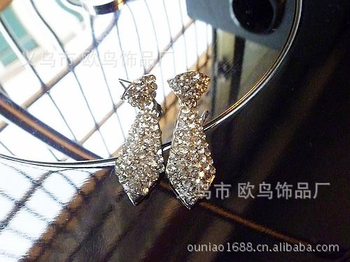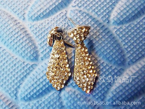 义乌饰品批发定做 满钻领结 领带 婚庆耳环