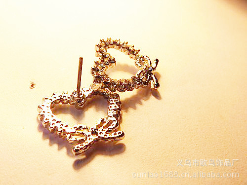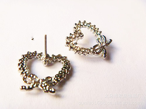 韩国耳钉 心形蝴蝶结镶钻耳饰 热销时尚新品
