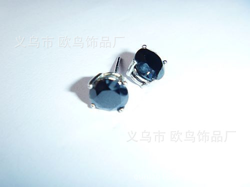 日韩耳钉 单颗黑色锆石耳钉 合金耳钉 简单时尚款耳钉