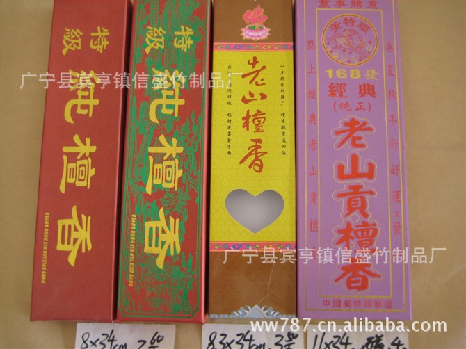 本厂是一家专业生产竹木制品的企业,产品主要销往全国各大中城市, 以及出口香港、台湾、 美国、 新加坡以及东南亚等国 家与地区。 我们专业生产:香签、制香原料、竹竿.工艺竹签.制香竹签等竹木 制品。 我们可根据客户的需求,为突出企业特色形象的需求 设计制作生产与包装。本厂一直以“实施科 学管理,塑造品牌”为方针,正以崭新的面貌、卓 越的品质、物超所值的产品,在国内外客户的心中树立 起品牌形象。 本厂一向信奉以质量第一、信誉第一、客户至上作 为经营宗旨,热诚、周到地为国内外广大客户服务。 同时销售木粉、商标、烫金纸、玻璃纸、卷钱香水、金片、香精、玫瑰精、嫩黄、品绿、大红、灵光粉、腰带、顶花等制香原材料! 应有尽有!样样俱全!信誉可靠!质量上乘!价格实惠! 欢迎新老客户来电咨询!欢迎上门参观! 公司网站:http://ww787.cn.alibaba.com/ Q Q : 151358990 制香材料咨询电话:13827500787 陈先生
