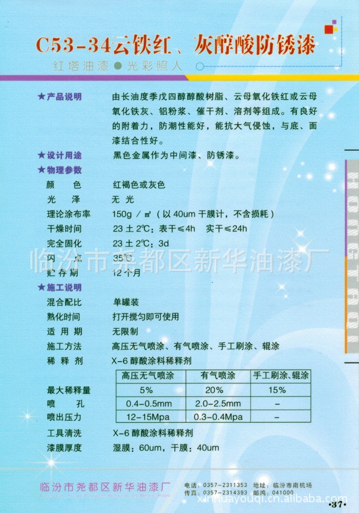 长期供应C53-34云红铁、灰醇酸防锈漆 油性红丹防锈漆