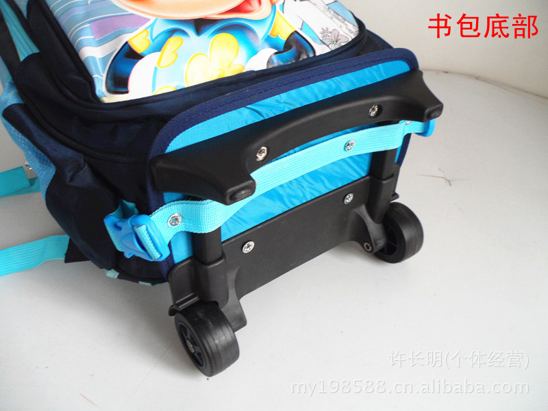 6、包装方式:单个拉杆书包由OPP袋(透明胶袋)包装,50-70个/大包,再选用优质上等耐用纸盒,可防止运输途中产品损坏。