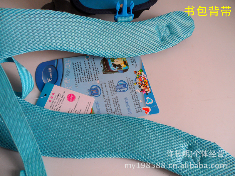 Q:小孩背着累吗?书太多就试试让他牵着书包一起走吧,书少的时候,就用减负双肩背带,里面有弹力珍珠棉,很舒服的哦!