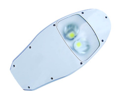 材料:高导热铝材质的散热器和高透光率玻璃透镜,玻璃透镜的2次配光,表面处理:银色耐酸防腐处理(可选各种颜色),光源:大功率的COB集成封装LED光源(可选台湾晶元或者美国普瑞),电源:高功率因素的恒流电源,寿命:40000小时的长寿命,节能:约60%的节能,LED输入电压:DC30~36V,配上电池和太阳能板能够组合成太阳能路灯。