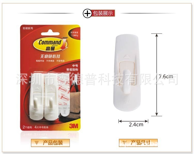 3M 高曼 无痕常规挂钩 中号 承重1.36kg 不留残胶