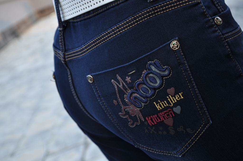 1.全棉洗水做旧牛仔裤,撞色拼接+精致绣花,时尚前卫;