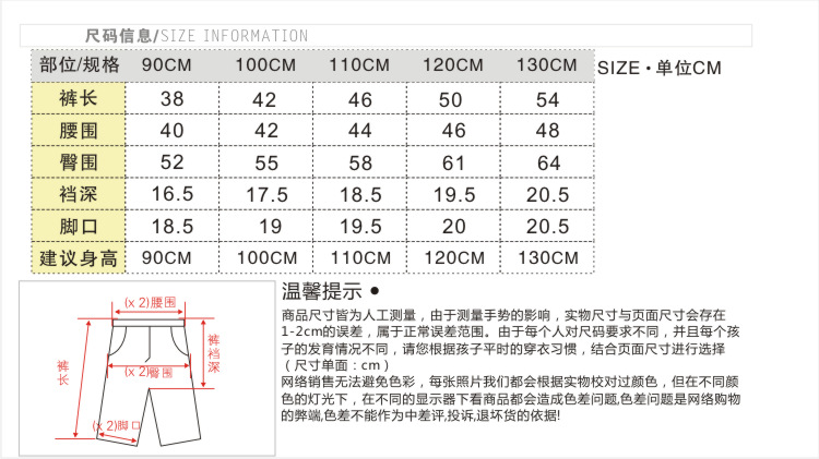 尺码:3码90CM 5码100CM 7码110CM 9码120CM 11码 130CM