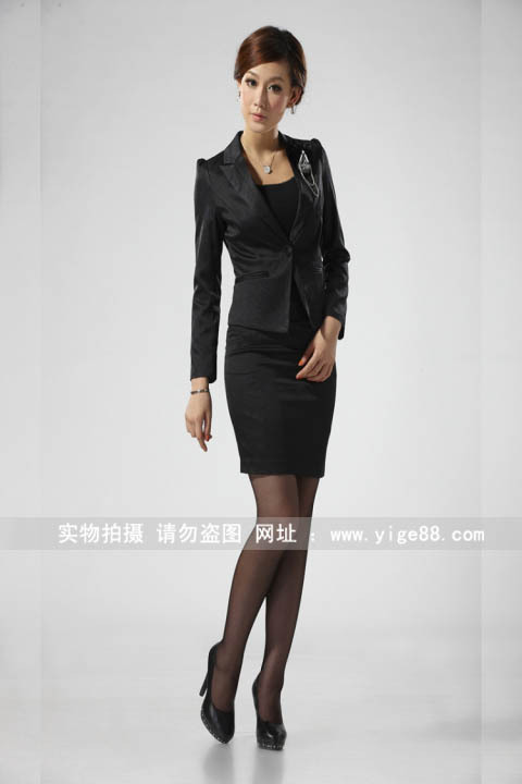 伊格尚风OL通勤职业套装 修身玻璃扣小西装 工作服 三件套装8101