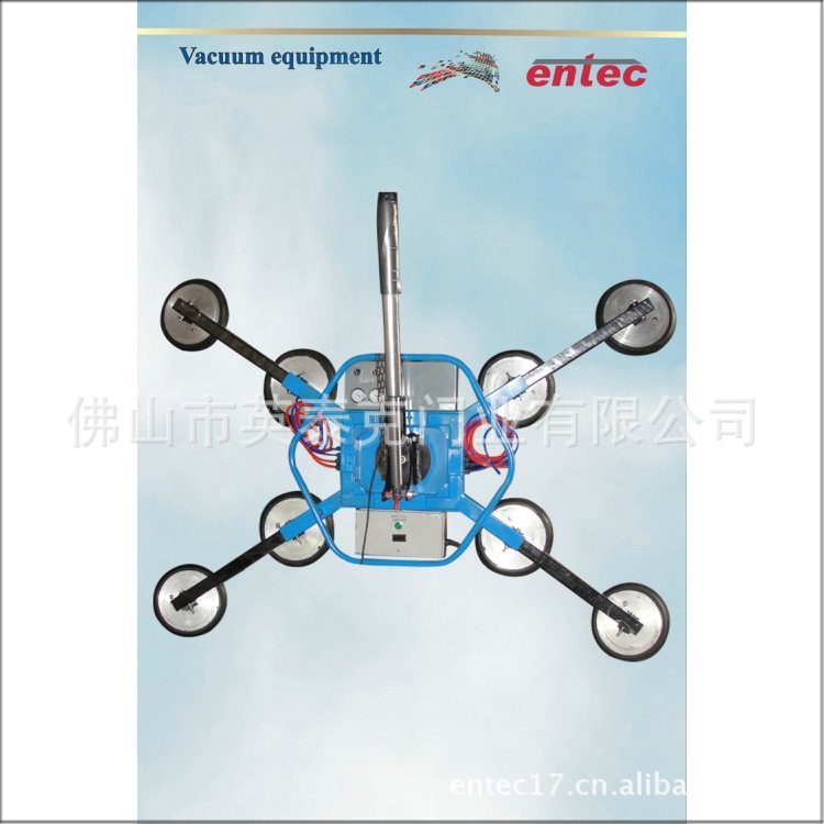 产品详细介绍:概述:此吸盘吊机主要用于建筑工程玻璃幕墙安装,玻璃深加工生产线上、下料及一切大型平板玻璃位置的移动,可完成大型平板玻璃吊装中的翻转90度、旋转360度等方位的变化工作。最大吸附最大重量可达 720Kgs。特征:-两个独立的真空系统-遥控操作代替手动-双重真空系统保证使用此设备的安全性,即使一个真空系统出现问题,不至于导致整个设备瘫痪,避免事故的发生。-遥控器释放按纽特殊设计,避免预料之外的错误操作以至发生事故。-吸盘可调节的臂长可以用于不用尺寸的玻璃- 最小吸附玻璃尺寸:1800mm x 1100mm- 吸盘数量:8 pcs