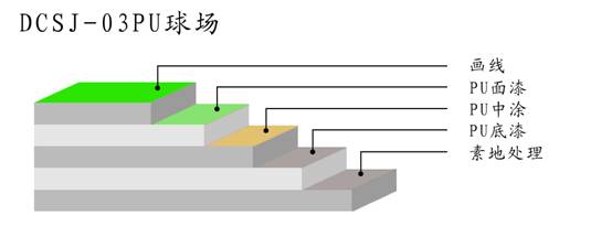⑥划线:球场依标准白色,黄色PU漆以50mm划线;