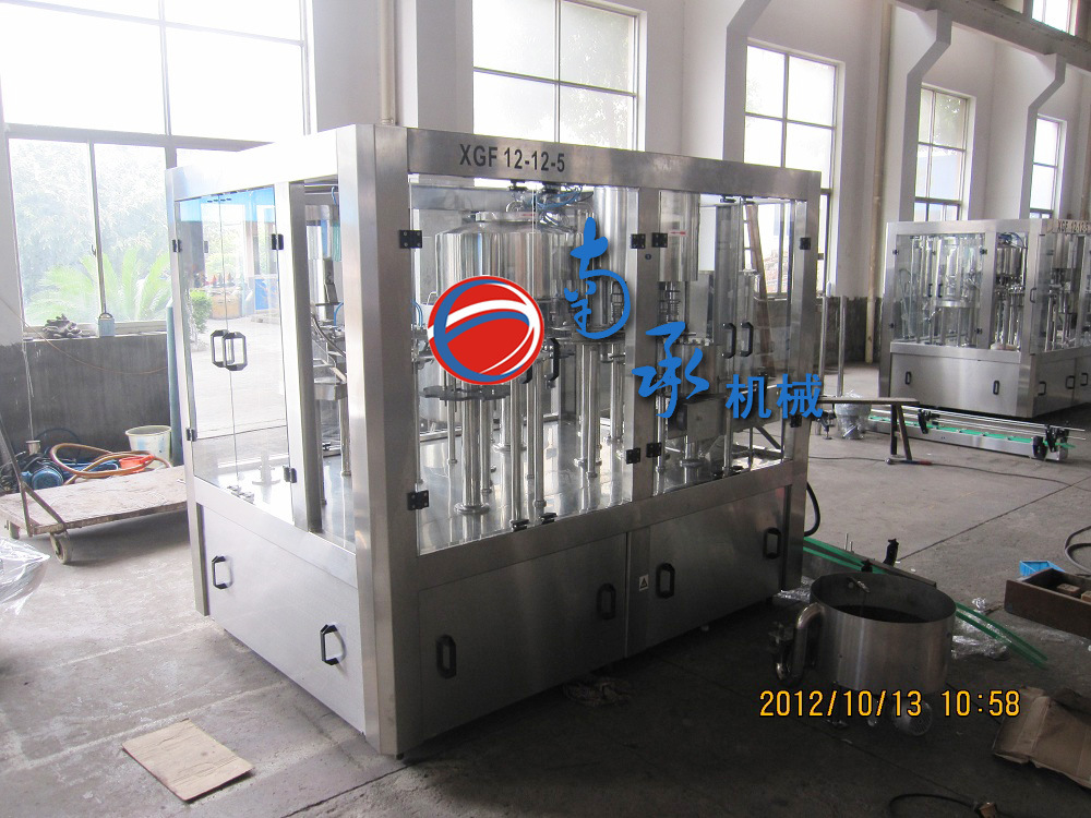本系列设备主要用于聚脂瓶装各种矿泉水、纯净水等不含气饮料的生产,在一机上实现冲瓶、灌装、封盖。