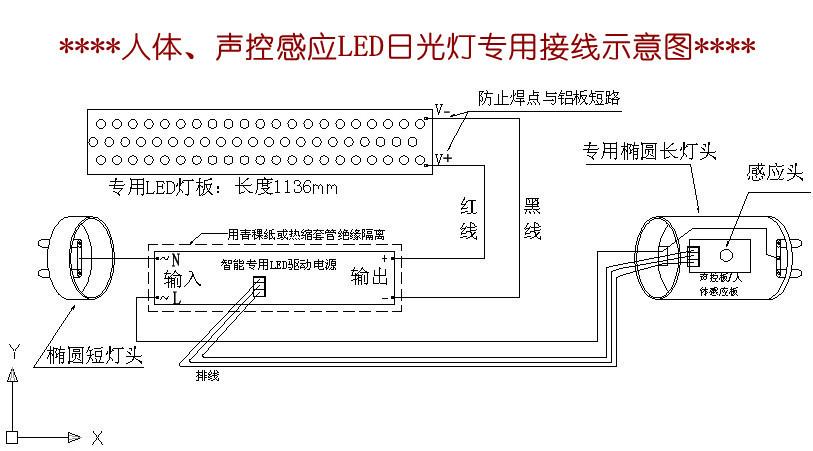 四:0.6米led感应灯外壳安装示意图