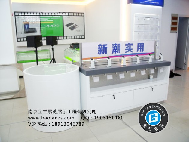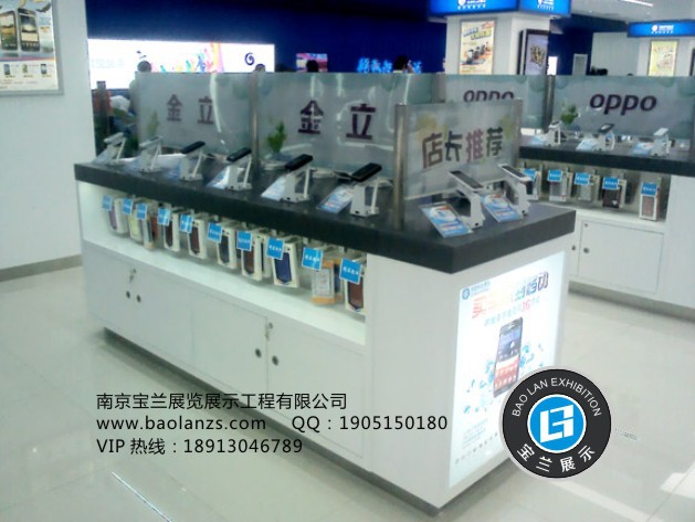 专业从事:各类手机柜台,连锁商铺、橱窗展柜、陈列展示、商业道具、货架货柜、展览展示设计与制作!公司拥有一流的设计、采用优质MDF板制造,高级‘PU’烤漆,产品结构合理,坚固耐用,美观大方!2600平方米的现代化加工后厂,公司先进的企业管理架构,强大技术力量为后盾,为客户提供专业化高质量的服务。通过我们的服务,可以让您的公司在市场中树立更好的形象和知名度。联系人:展先生 手机:18913046789 QQ:1905150180