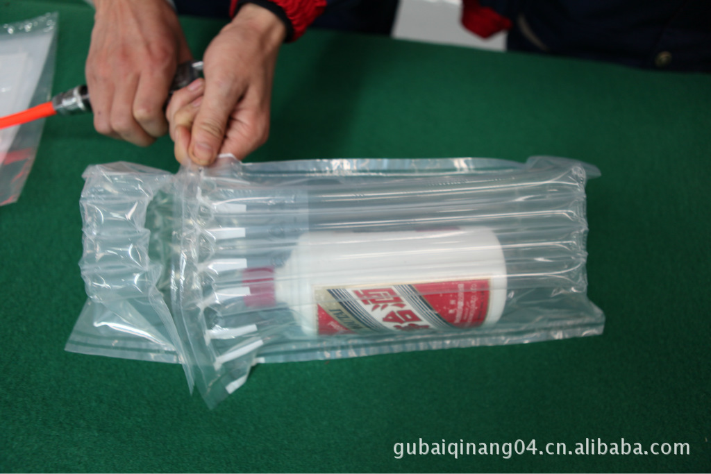 气排缓冲包装是红酒内包装的最佳选择,可以根据酒瓶的大小来定制尺寸,紧密贴合瓶身,有效地吸收在运输过程中产生的震动并起到缓冲作用,并且质优价廉.完美的包装更能提升您的品牌价值.