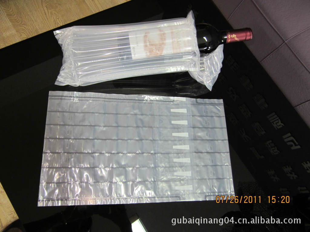 气排缓冲包装是红酒内包装的最佳选择,可以根据酒瓶的大小来定制尺寸,紧密贴合瓶身,有效地吸收在运输过程中产生的震动并起到缓冲作用,并且质优价廉.完美的包装更能提升您的品牌价值.