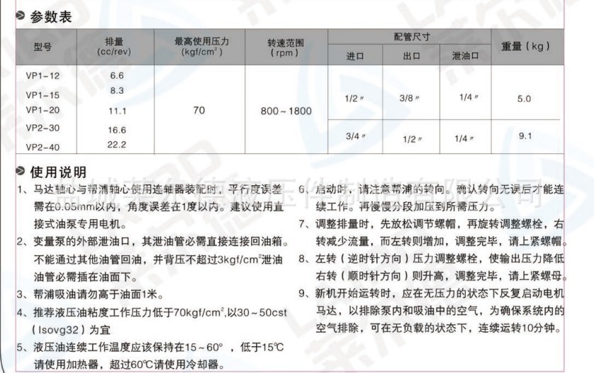 主要规格型号:VP1-12-70 VP1-15-70 VP1-20-70 VP2-30-70 VP2-40-70