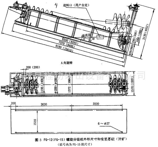 2、沉没式分级机:溢流端的螺旋叶片全部浸入溢流面以下。主要适用于溢流粒度为0.15-0.07mm的矿石分级。