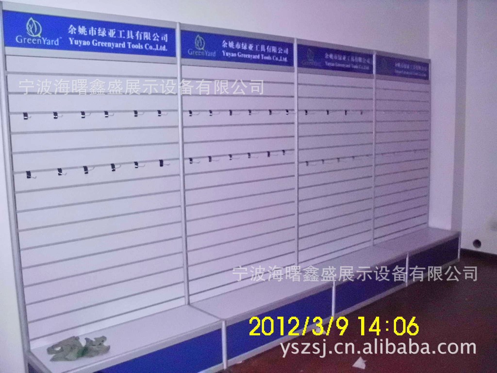 品名:XS-槽板式展示架系列 材质:铝型材 规格:根据客户要求定制 定做 ,也可以按我们标准尺寸做。 适用范围:五金工具,挂件饰品,电插板,箱包,背包,童装,工艺品,文具用品,塑料袋 ,雨具用品,及其他各类电子配件等。适用类型:公司 工厂 商店 超市 店铺等,产品特点:使用简单,装卸便捷,占地空间少,使用寿命长,永不退色。外观新颖,美丽大方,内设35W的超长寿命的石英灯和射灯,上下两边可以做上产品Logo或公司名称的Logo,可以从那一刻起,打响自己的品牌,打响产品的知名度,XS-槽板式展示架系列是您包装产品的首家之选,是吸引客户的最佳亮点。