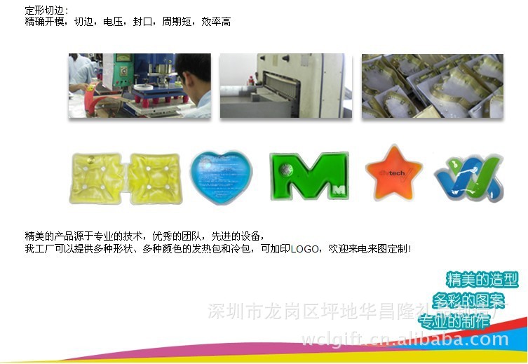 华昌隆礼品制造厂(Wah Cheong Lung Gift Factory) 成立于2001年8月,位于交通便利、配套齐全、充满活力与朝气的深圳市龙岗区。是一家集开发,生产,销售为一体的综合性企业,本公司已通过BSCI 和 ISO9001国际认证,是全球范围内香味发热包、眼睛加布发热包、奶瓶发热包及各种类型发热包等产品研发和生产经营的领先者之一。