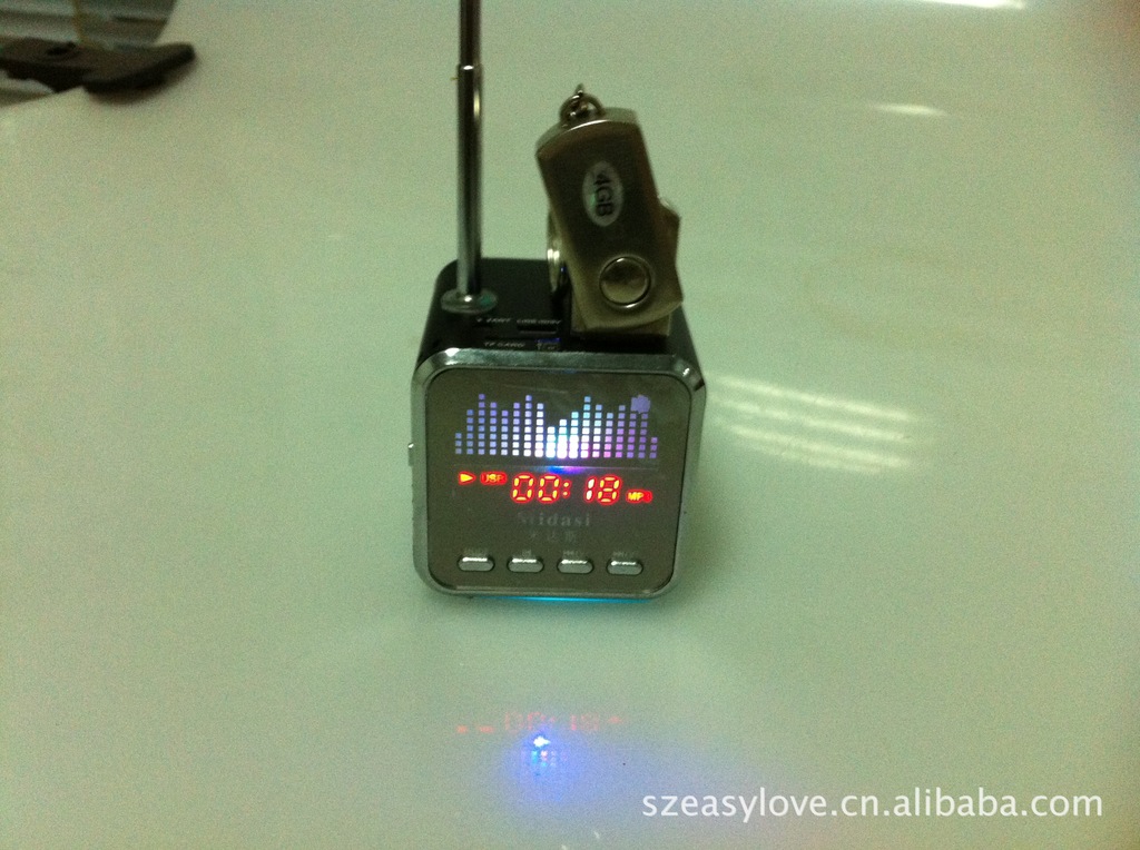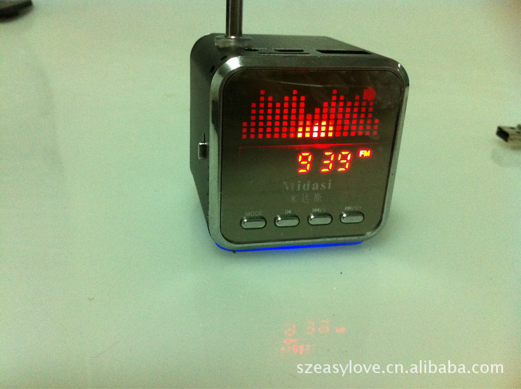 》4个功能按键:MODE(FM/TF CARD/USB/LINE IN),VOL-/PREV,VOL+/NEXT. PLAY/PAUSE.