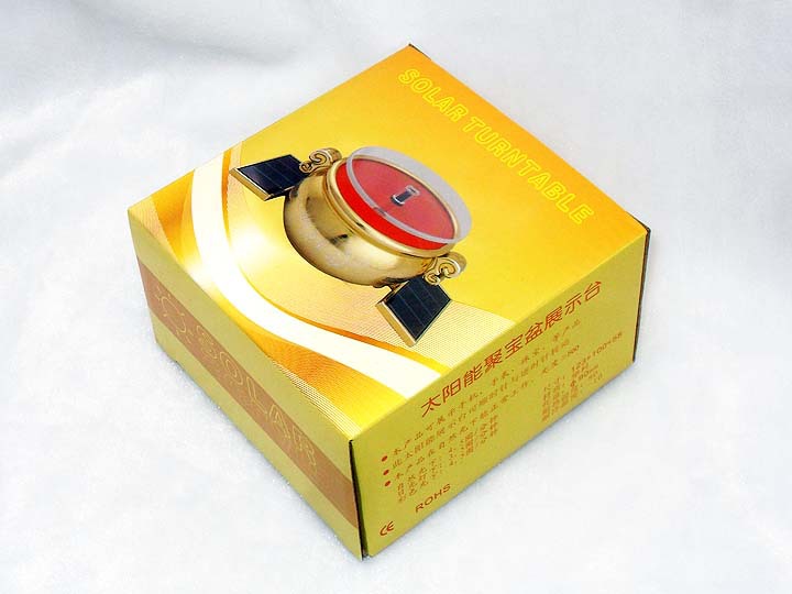 说明: 产品在自然光线下能够正常地工作,双向360度自动旋转展示。免用电池或插电,环保,节能,使用寿命长。光电转换工作原理,光强≥260LUX 在大于260LUX的光强下就能正常工作(自然光、普通照明灯都可)。 在光强为500LUX条件下,可以带动300克以上产品。